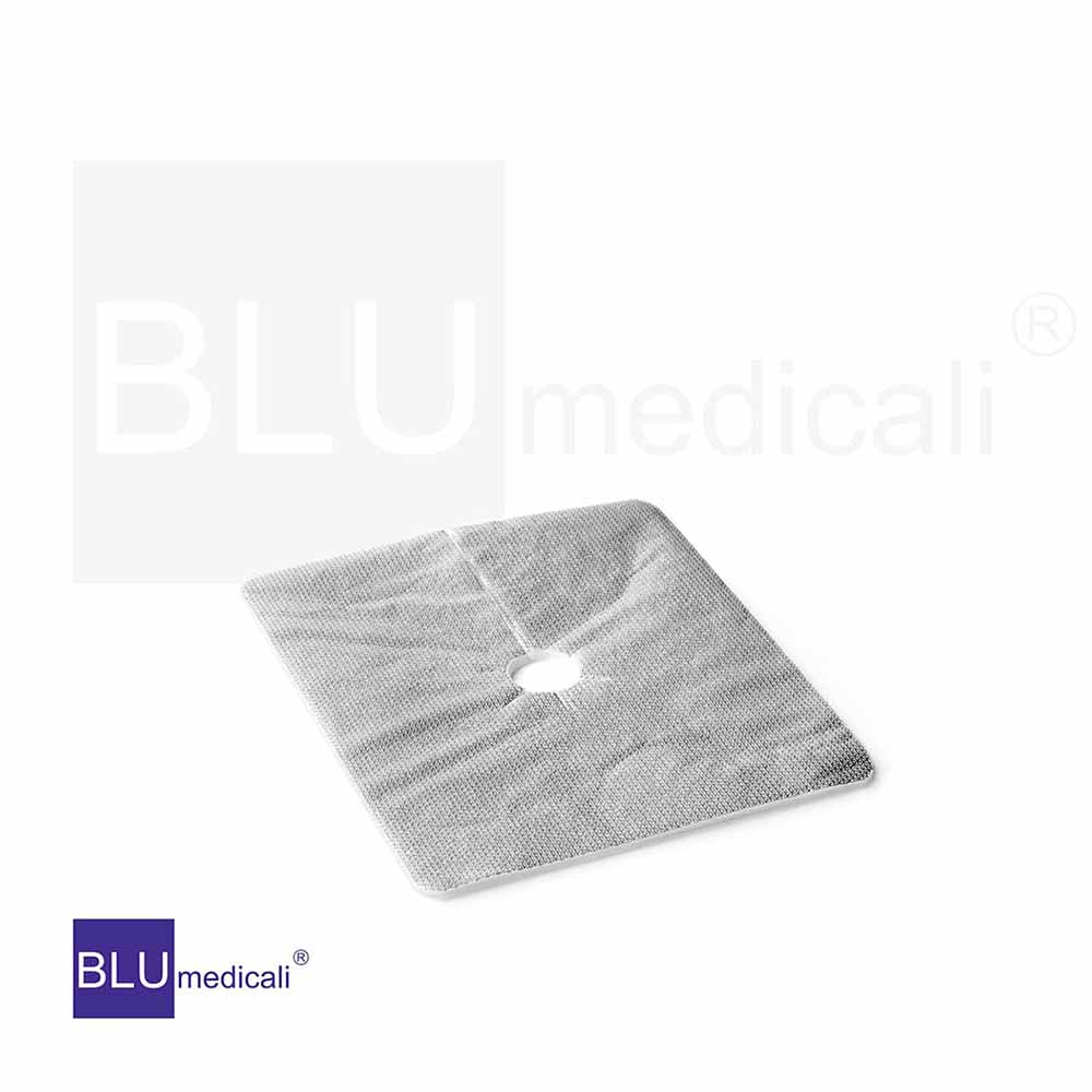 E’ presente un taglio centrale e un foro di diametro da 12 a 20mm che garantiscono agio nell’applicazione e comfort al paziente, utili a minimizzare nella zona peristomiale l’aderenza e il trauma durante l’uso e la rimozione. La compressa è formata da una superficie di materiale altamente assorbente e poroso per un rapido assorbimento del sangue e degli essudati, con un lato alluminizzato che ha una funzione cicatrizzante e di barriera alla contaminazione batterica. Il prodotto è un Dispositivo Medico sterile di classe Is sterile senza lattice.