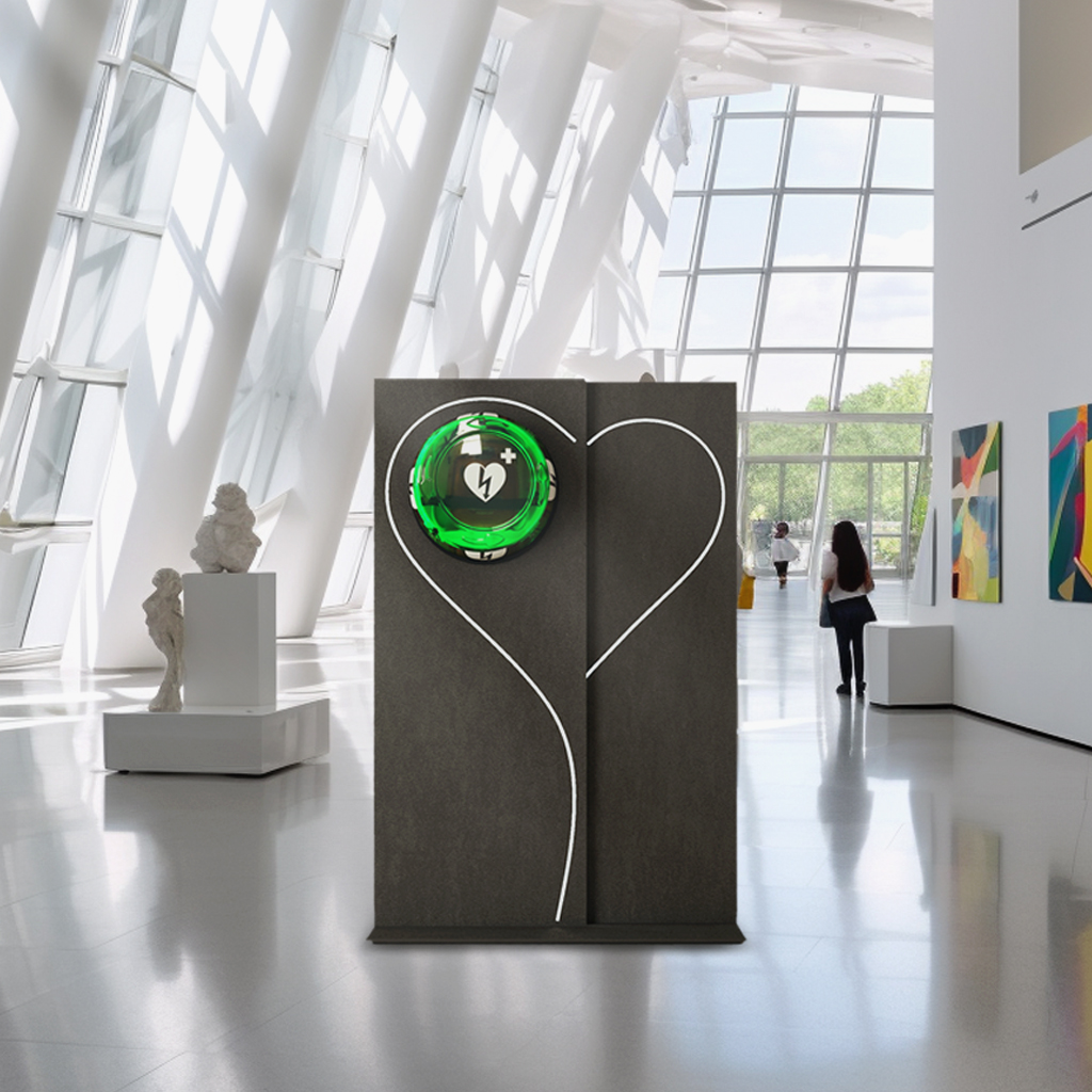 Monolith è il nuovo totem di design per il tuo defibrillatore. La sua figura slanciata e minimalista svela al suo interno un defibrillatore di ultima generazione, pronto all’uso in caso di emergenza. Inoltre, grazie alla sua illuminazione LED, diventa protagonista dell’ambiente circostante.